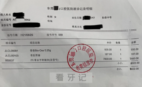以上是网友去东莞某口腔医院种植科看牙拍的种植牙价目表图片,供大家参考。