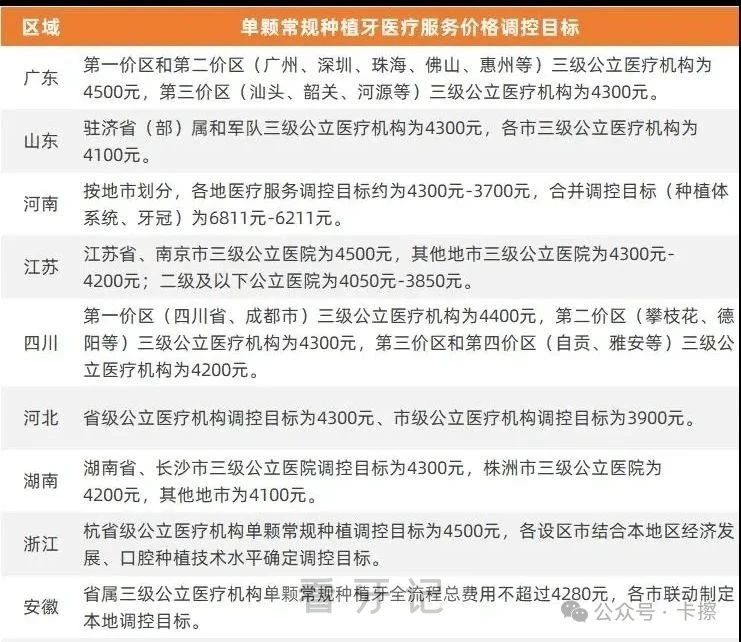种植牙的报价是根据不同省市、不同价区的政策来定的,每个省市,不同价区种植牙的费用都有不同,部分省市甚至允许在集采价格的基础上有5-20%的价格变化,所以不止我们列举的省市,全国各地都有自己的价格。