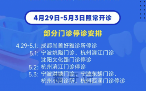 经查资料,尚善口腔五一假期安排如下,请大家按时间安排前往就诊。 来源:尚善口腔