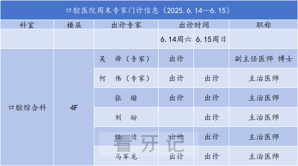 西安存济口腔医院专家出诊信息(6.14—6.15) 2025年6月10日 14:38 • 最新动态 亲爱的患者朋友: 以下为西安存济口腔医院本周末(2025年6月14日—6月15日)专家医师门诊出诊时间一览表,请大家提前预约就诊。我们将时刻守护您与家人的身体健康! 本文内容源自网络仅供参考,不作为诊断医疗依据,更多查询请 → 在线咨询客服 存济口腔医院西安口腔医院西安存济口腔西安存济口腔医院 相关推荐 最新动态 揭阳**口腔科换新地方了 2023年10月30日,揭阳**口腔科门诊将搬至新门急诊住院综合大楼(1号楼)5楼! 为方便广大患者就医,提供更加便捷、温馨、优质、安全的医疗服务,揭阳**口腔科门诊成功完成扩建升… 2023年10月30日 最新动态 奉贤区中医医院口腔科是公立还是私立? 奉贤区中医医院口腔科是公立医院。 奉贤区中医医院口腔科是一个专业治疗口腔疾病的临床科室,从建院初期由一人坐诊,发展到拥有一支经验丰富,技术精湛医疗团队。随着人员更替,设备更新换代,… 2024年11月19日 最新动态 绍兴市口腔医院2025年新年元旦放假时间出炉 【温馨提示】绍兴市口腔医院元旦假日正常诊疗,守护口腔健康“不打烊” 各位患者朋友:我院元旦假日(2025年1月1日)照常门诊,为广大患者朋友解决各类口腔问题。绍兴市口腔医院 2024年12月27日