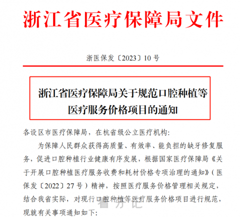 近日,浙江**疗保障局印发《关于规范口腔种植等医疗服务价格项目的通知》,开展全**种植医疗服务收费的专项治理。